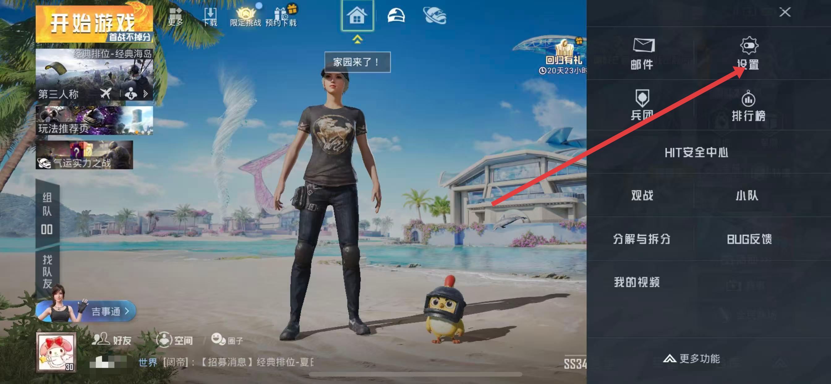 2、在展開的功能菜單中,點擊設(shè)置圖標(biāo),進入游戲設(shè)置界面。