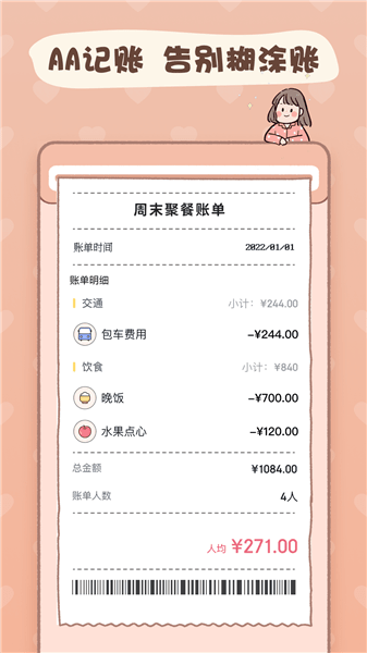 AA制,各付各,讓你不再煩惱多人消費的金錢結算問題;