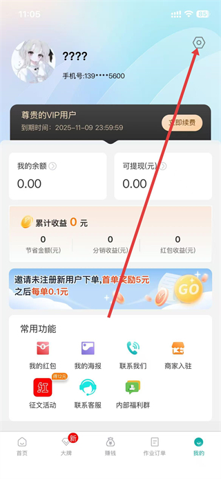 2、在我的頁面中,找到并點擊右上角的設置圖標。
