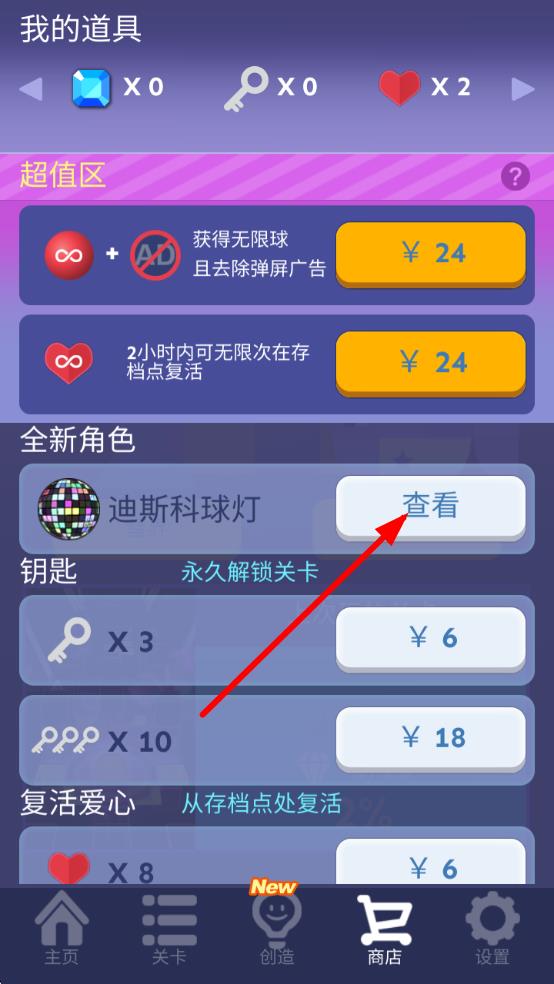1、打開滾動的天空,點擊底部商店,找到新球點擊查看。