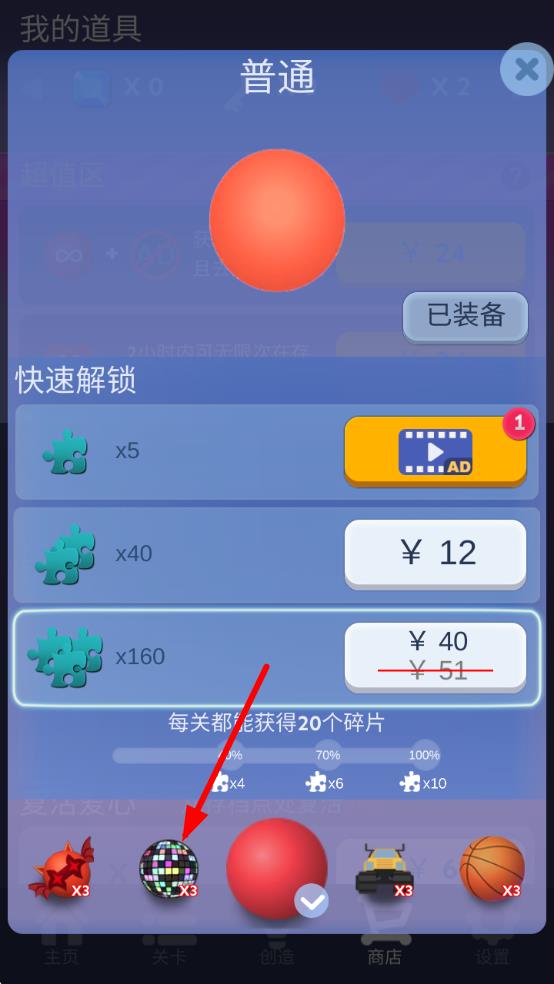 3、滿足解鎖條件時,點擊使用即可更換為該球。