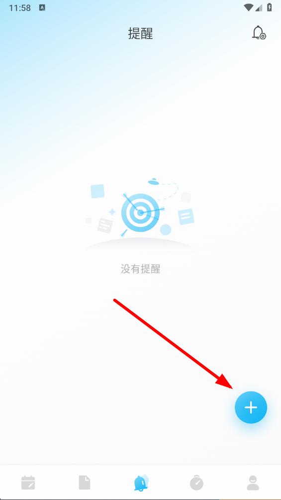 2、在提醒頁(yè)面中,點(diǎn)擊右下角的添加按鈕,進(jìn)入提醒添加界面。