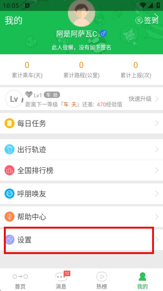 1、打開(kāi)軟件,進(jìn)入我的頁(yè)面,點(diǎn)擊設(shè)置選項(xiàng)。