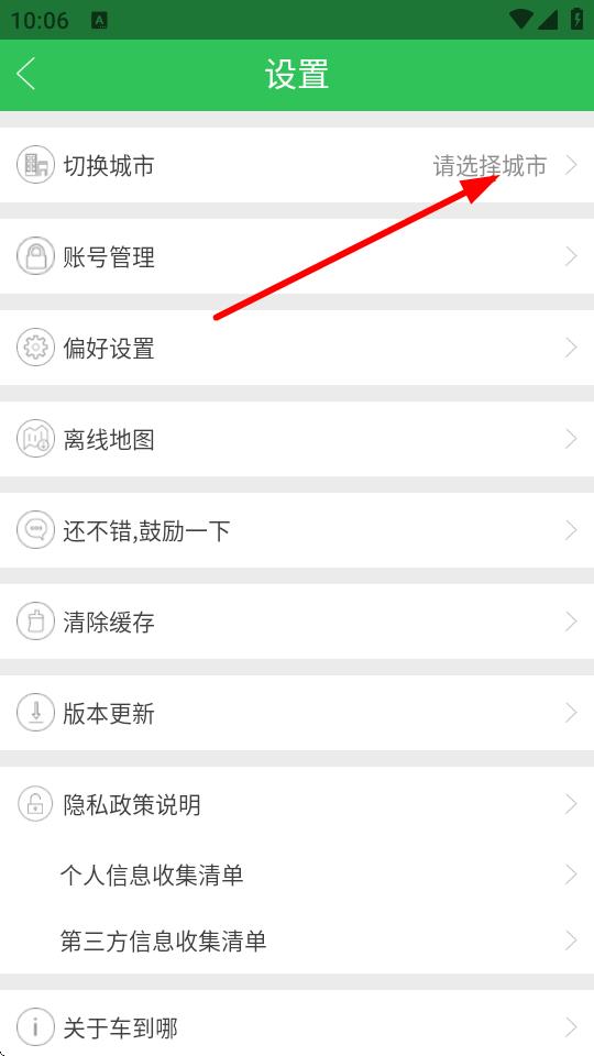 2、在設(shè)置頁(yè)面中,點(diǎn)擊切換城市欄的請(qǐng)選擇城市。