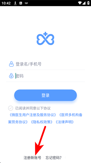 1、打開微醫(yī)生APP,在登錄頁面點擊注冊新賬號選項。
