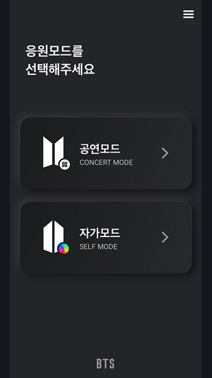 bts應(yīng)援棒安卓版APP最新版可以和防彈少年團的第三代應(yīng)援棒來配合使用,用于在演唱會的時候進行應(yīng)援棒的控制,軟件有演唱會以及自選兩種模式,用戶可以利用手機輕松的變幻燈光的顏色,喜愛的朋友趕快下載使用吧!