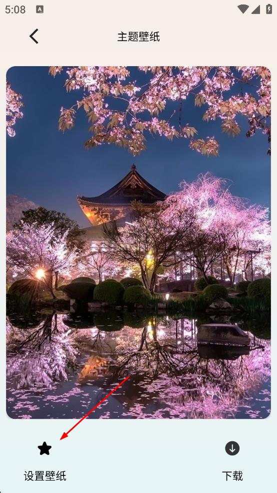 3、在壁紙詳情頁,點擊左下角“設置壁紙”按鈕,按照軟件提示完成操作,即可將該壁紙設置為設備桌面或鎖屏壁紙 。