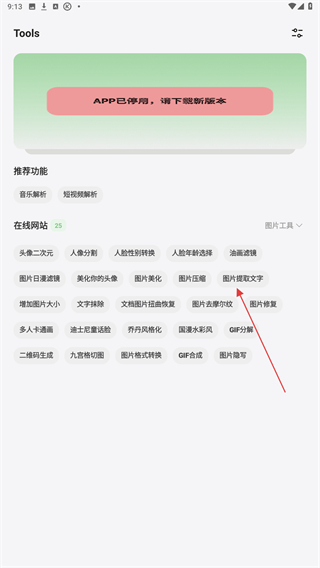 1、啟動(dòng)卡音APP,進(jìn)入首頁(yè)內(nèi)點(diǎn)擊下方圖片提取文字的按鈕。