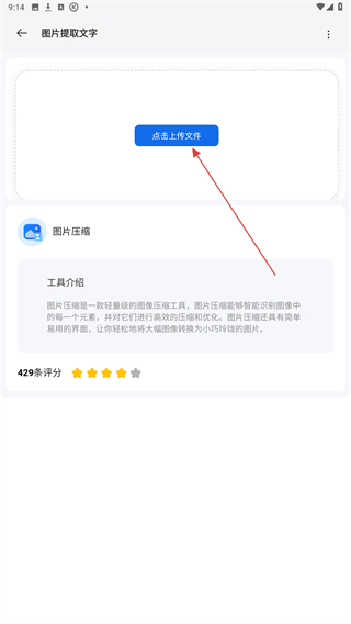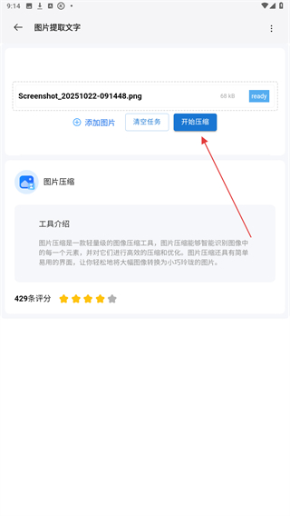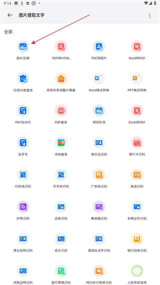 2、進(jìn)入圖片提取文字的頁(yè)面內(nèi),點(diǎn)擊圖片壓縮的功能按鈕。