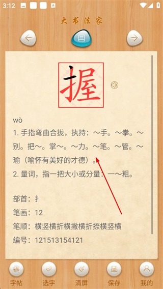3、點擊字體可查看該字的讀音、釋義、部首、筆畫、筆順等詳細(xì)信息,輔助學(xué)習(xí)。
