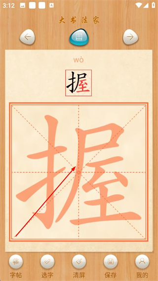 2、進入練字界面后,可在字帖上按照筆畫提示進行書寫練習(xí)。