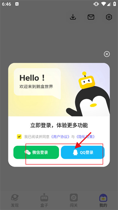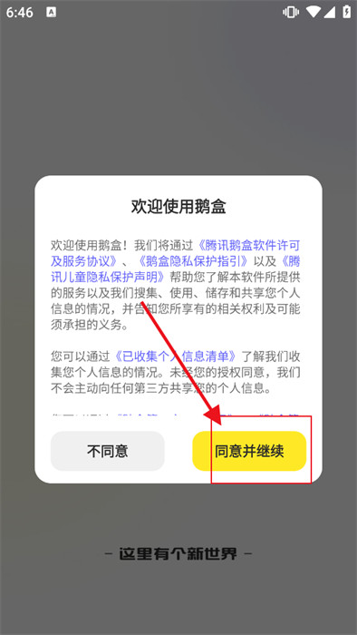 1、首先,將鵝盒軟件下載到桌面上,并進(jìn)入其中,點(diǎn)擊【同意】可進(jìn)入到首頁;