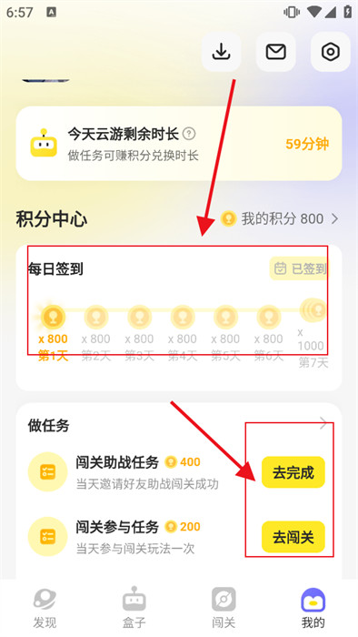 5、如果想要獲取更多金幣,每天都能在線簽到來領(lǐng)取金幣,隨時(shí)都能批量兌換云玩卡。