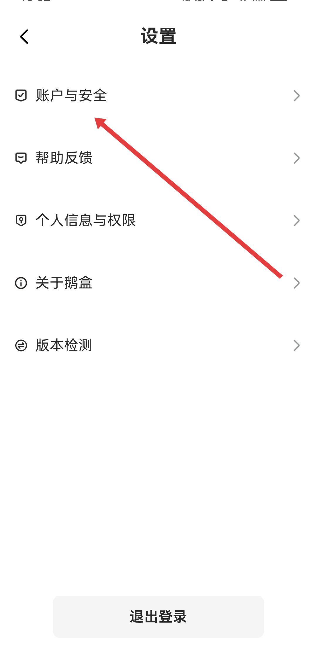 1、進(jìn)入鵝盒設(shè)置的頁面后,需要點(diǎn)擊賬戶與安全選項(xiàng),進(jìn)入賬戶安全設(shè)置的界面。