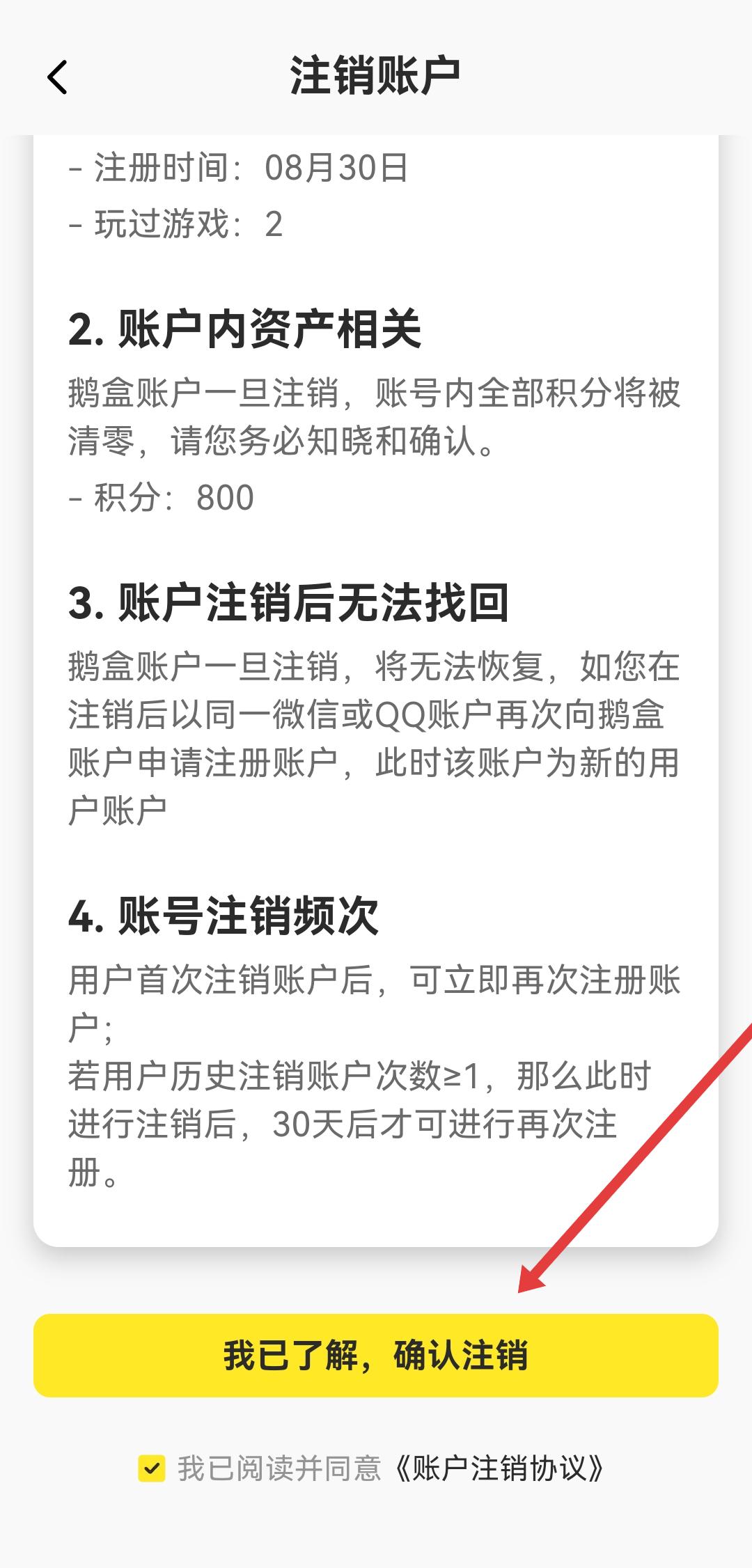 3、在注銷賬戶頁面里,勾選我已閱讀并同意賬戶注銷協(xié)議,點(diǎn)擊我已了解,確認(rèn)注銷按鈕,完成賬號(hào)注銷申請(qǐng)。