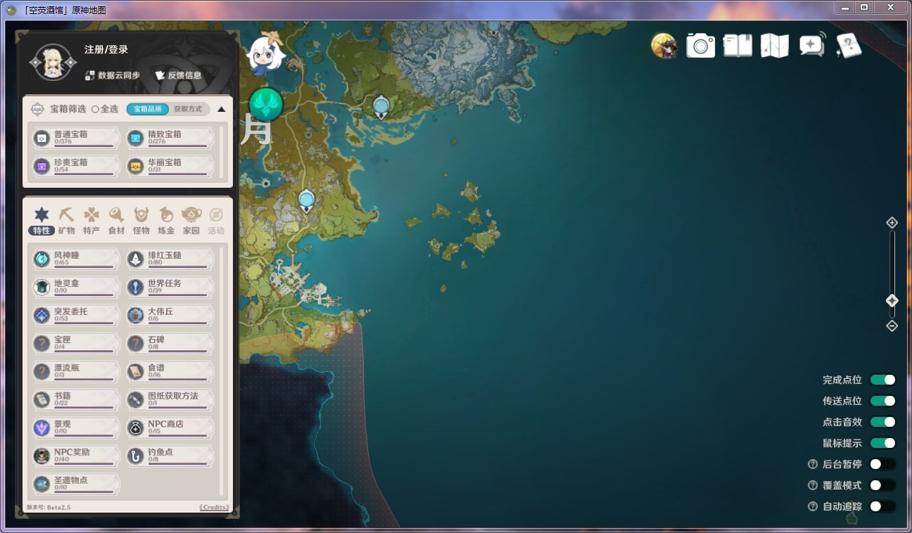 2、資料齊全無論是神瞳分布,還是寶箱分布,還是材料分布,還是任務(wù)分布。