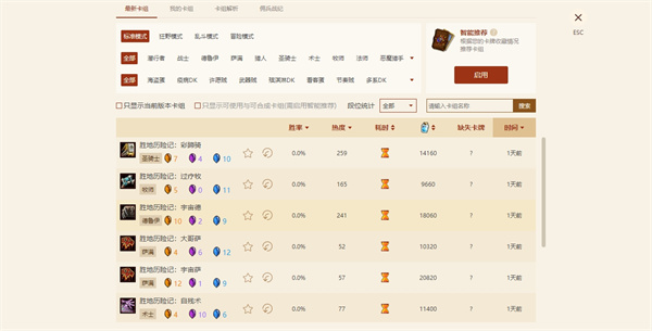 爐石盒子app卡組庫與pc版互通,為玩家提供準(zhǔn)確的卡組對(duì)陣九職業(yè)勝率、熱度、造價(jià)等數(shù)據(jù)信息進(jìn)行參考,同時(shí)過萬套卡組滿足不同游戲階段玩家所有需求。