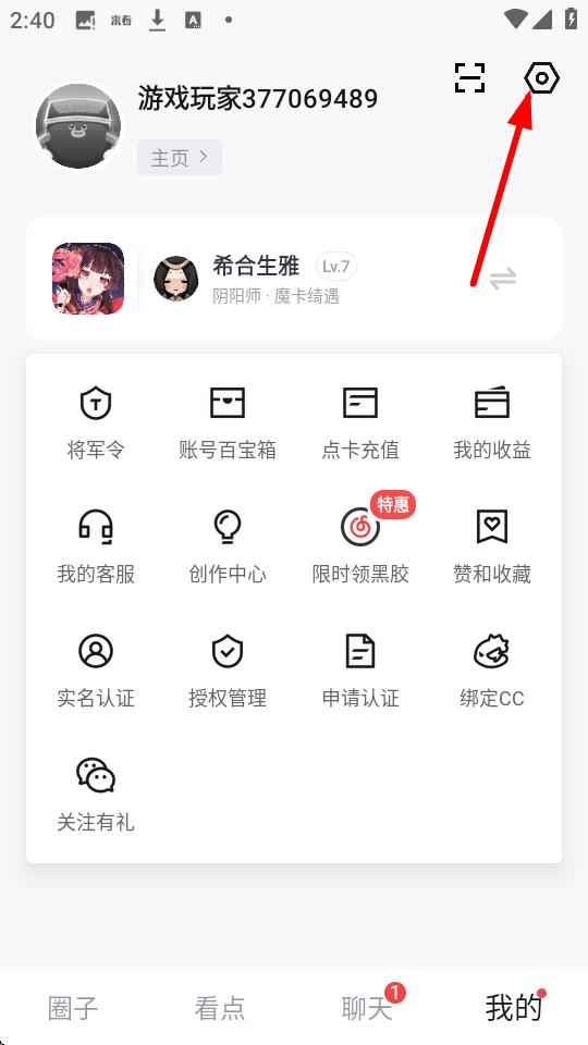 2、在個(gè)人頁面右上角,點(diǎn)擊設(shè)置圖標(biāo)進(jìn)入設(shè)置界面。