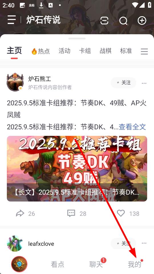 1、打開爐石傳說助手,點(diǎn)擊底部導(dǎo)航欄中的我的選項(xiàng)進(jìn)入個(gè)人頁面。