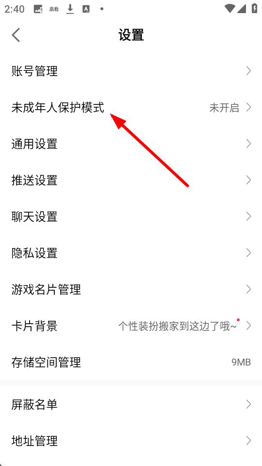 3、在設(shè)置界面中,找到并點(diǎn)擊未成年人保護(hù)模式選項(xiàng)。