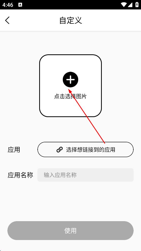 2、以“自定義”為例,點(diǎn)擊進(jìn)入自定義頁面,點(diǎn)擊“點(diǎn)擊選擇圖片”按鈕,挑選用于圖標(biāo)的圖片。