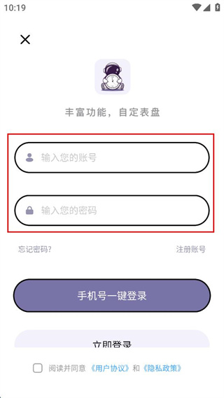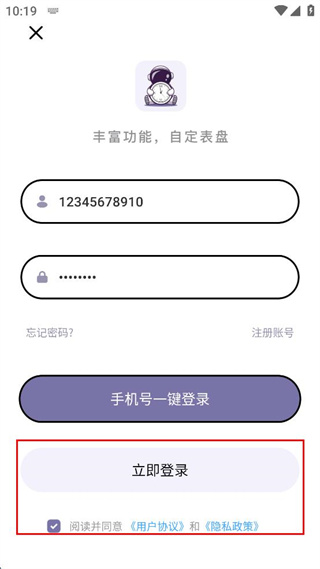 3、在登錄界面輸入賬號和密碼,勾選用戶協(xié)議和隱私政策。