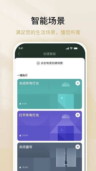 可根據(jù)自己的使用習(xí)慣,設(shè)置個(gè)性化場(chǎng)景及設(shè)備聯(lián)動(dòng),家居生活更智慧