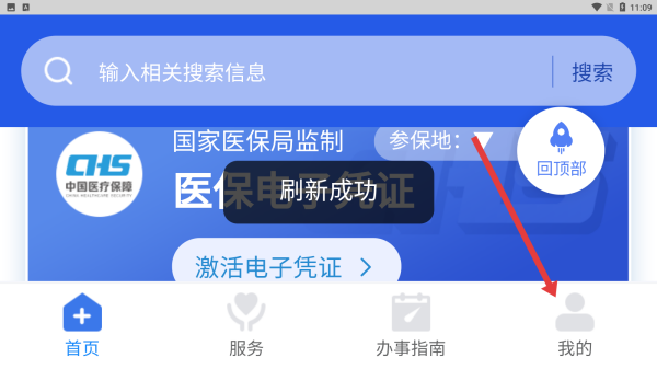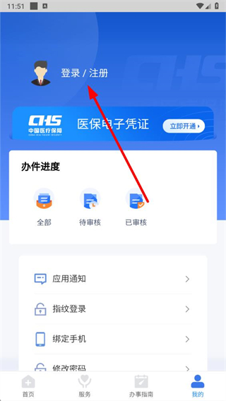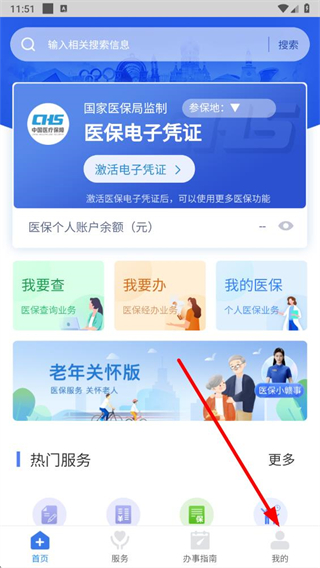 1、打開醫(yī)保應(yīng)用首頁,點(diǎn)擊底部導(dǎo)航欄右側(cè)的我的,進(jìn)入個(gè)人中心頁面,開啟賬號操作流程。
