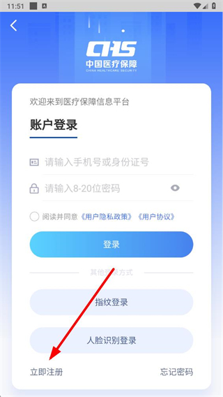 3、在賬戶登錄頁面,點(diǎn)擊立即注冊選項(xiàng),進(jìn)入注冊信息填寫頁面。