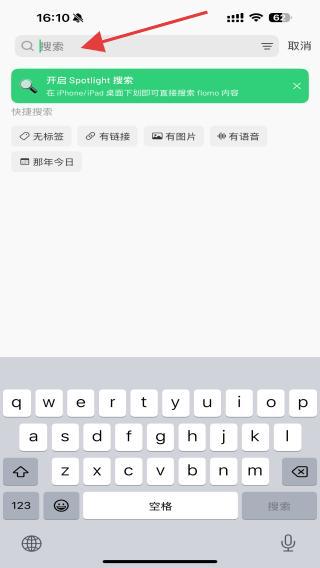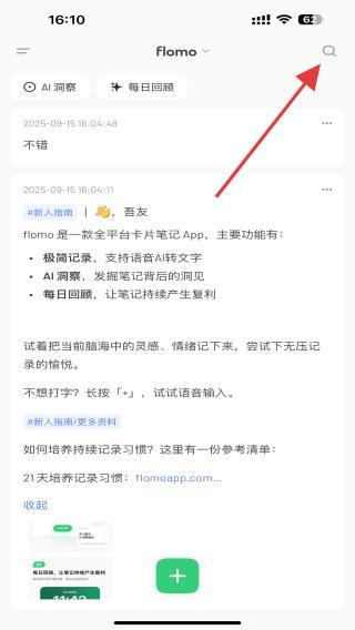 1、啟動(dòng)flomo浮墨筆記應(yīng)用軟件,點(diǎn)擊右上角搜索的按鈕。