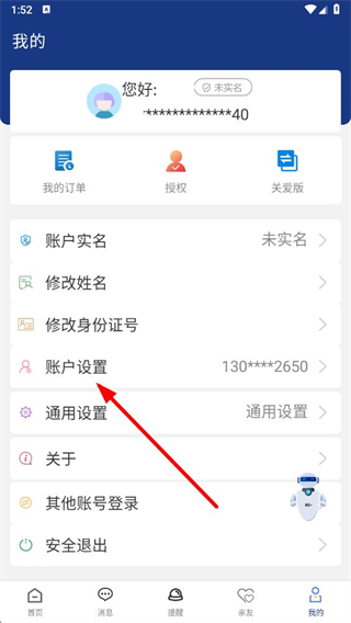 2、進(jìn)入我的頁(yè)面后,找到賬戶設(shè)置選項(xiàng)并點(diǎn)擊,該選項(xiàng)是進(jìn)入指紋設(shè)置功能的入口。