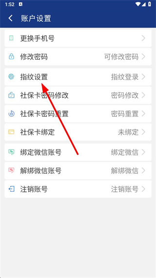 3、在賬戶設(shè)置頁(yè)面中,選擇指紋設(shè)置選項(xiàng),點(diǎn)擊后可進(jìn)入指紋登錄的設(shè)置界面。