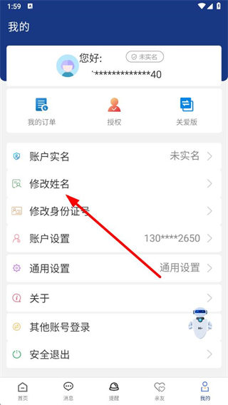 2、在我的頁(yè)面,找到修改姓名選項(xiàng)并點(diǎn)擊,該選項(xiàng)是進(jìn)入姓名修改操作的入口。