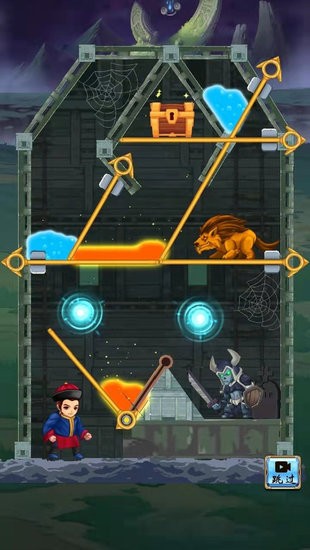 少年與公主手游選用了最近很火的拉針解謎玩法,每個關卡場景會被分割成幾個部分,中間都是用拉針隔開,玩家需要找到正確的順序走到公主身邊,每次只能拉一根針,小心避開那些怪物和看守的士兵,部分關卡還會出現(xiàn)洪水和巖漿哦!