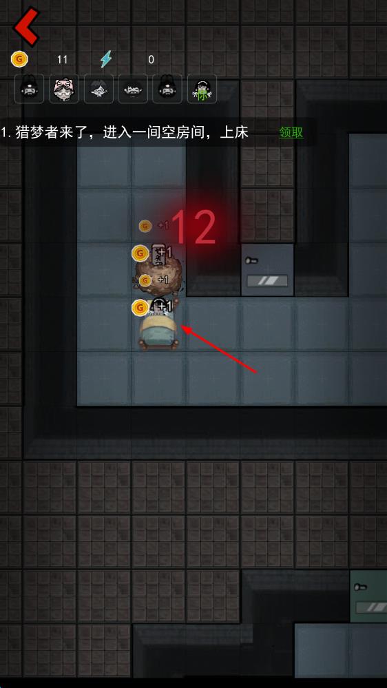 1、進(jìn)入游戲后,從多個人類角色中選擇其一,迅速在場景內(nèi)尋找空宿舍與空床位,找到后立即鎖好宿舍門,躺到床上開始發(fā)育,通過持續(xù)躺臥獲取初始金幣。