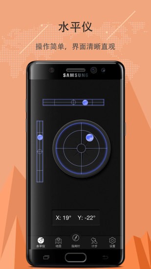 1、不單單是一個簡單的指南針工具,還融合了地圖、水平儀功能。