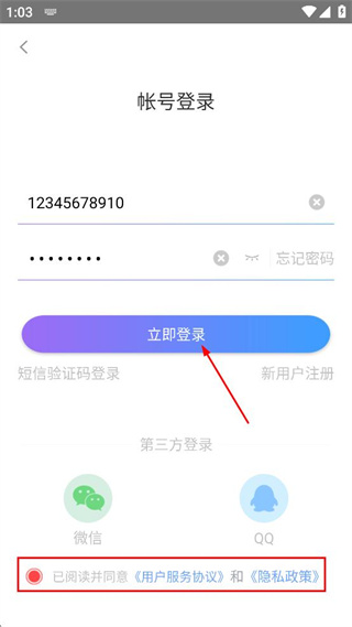 4、勾選已閱讀并同意相關(guān)協(xié)議選項,點擊立即登錄按鈕,完成軟件的登錄流程。