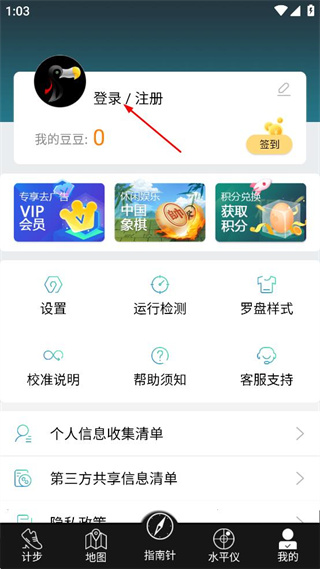 2、進入到個人主頁內(nèi),用戶需點擊登錄/注冊的區(qū)域。