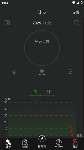 1、打開該計步軟件進入計步頁面,點擊底部我的選項,切換至個人中心界面。