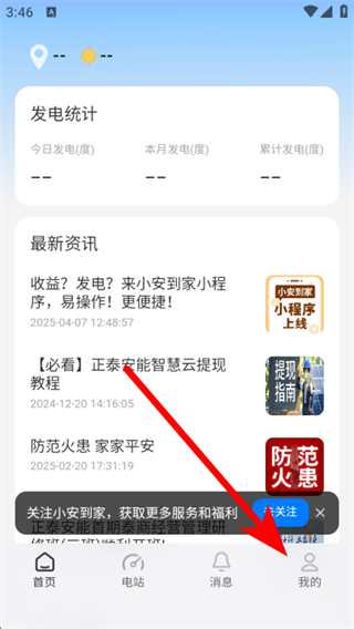 1、在正泰安能智慧云的首頁,點擊底部我的,進(jìn)入個人頁面。