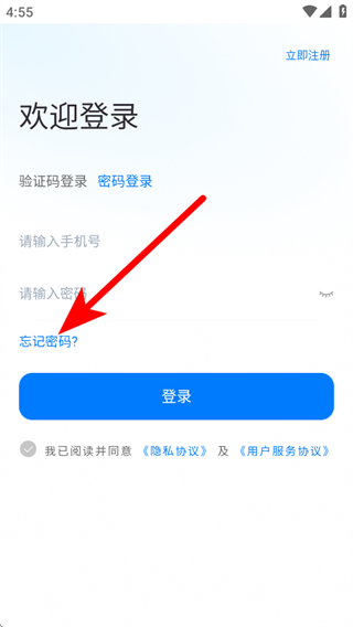 2、在密碼登錄頁面,點擊忘記密碼,進(jìn)入找回密碼頁面。