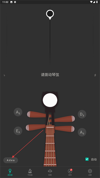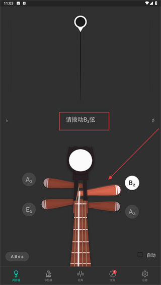 4、選擇后,再根據(jù)頁面提示進(jìn)行調(diào)弦并撥動。