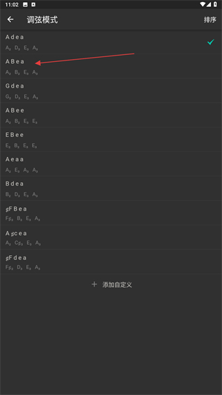 3、在調(diào)弦模式的頁面內(nèi),選擇并點(diǎn)擊弦的模式。