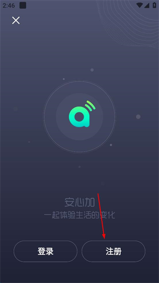 2、在登錄注冊選擇界面,點(diǎn)擊“注冊”按鈕,進(jìn)入注冊界面。