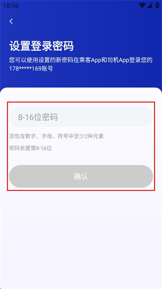 4、驗證完成后進入設置密碼頁面,按要求設置8-16位的密碼,點擊確認完成注冊登錄。