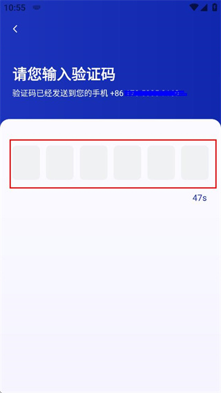 3、等待系統(tǒng)發(fā)送驗證碼,將收到的驗證碼依次填入對應的輸入框中,完成驗證步驟。