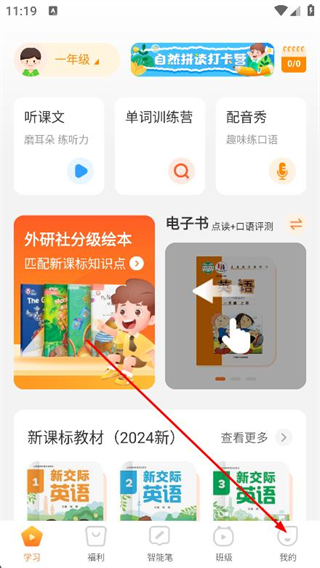 1、打開外研通,點擊底部導航欄最右側(cè)的我的選項。