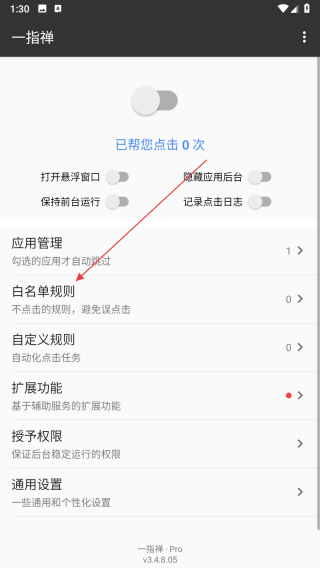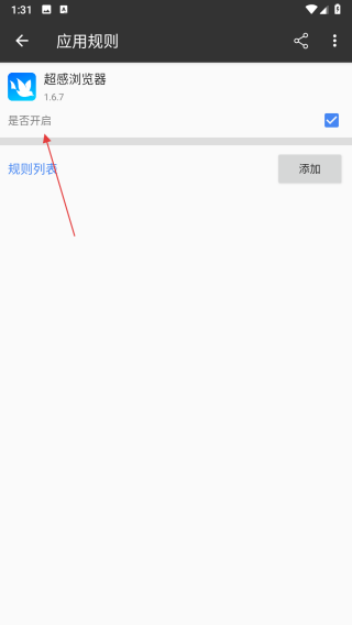 4、進(jìn)入該應(yīng)用的應(yīng)用規(guī)則頁(yè)面后,勾選是否開(kāi)啟選項(xiàng),即可將該應(yīng)用添加到一指禪的白名單規(guī)則中。
