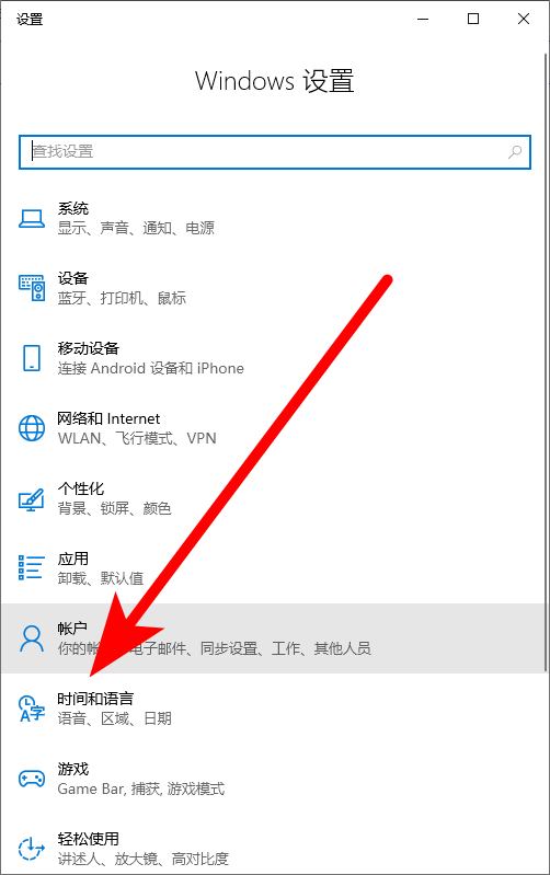 2、在Windows設(shè)置界面里,點(diǎn)擊“時(shí)間和語(yǔ)言”選項(xiàng)。