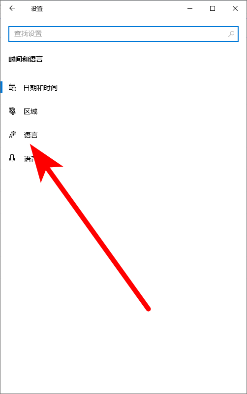 3、進(jìn)入時(shí)間和語(yǔ)言設(shè)置后,點(diǎn)擊左側(cè)列表中的“語(yǔ)言”選項(xiàng)。